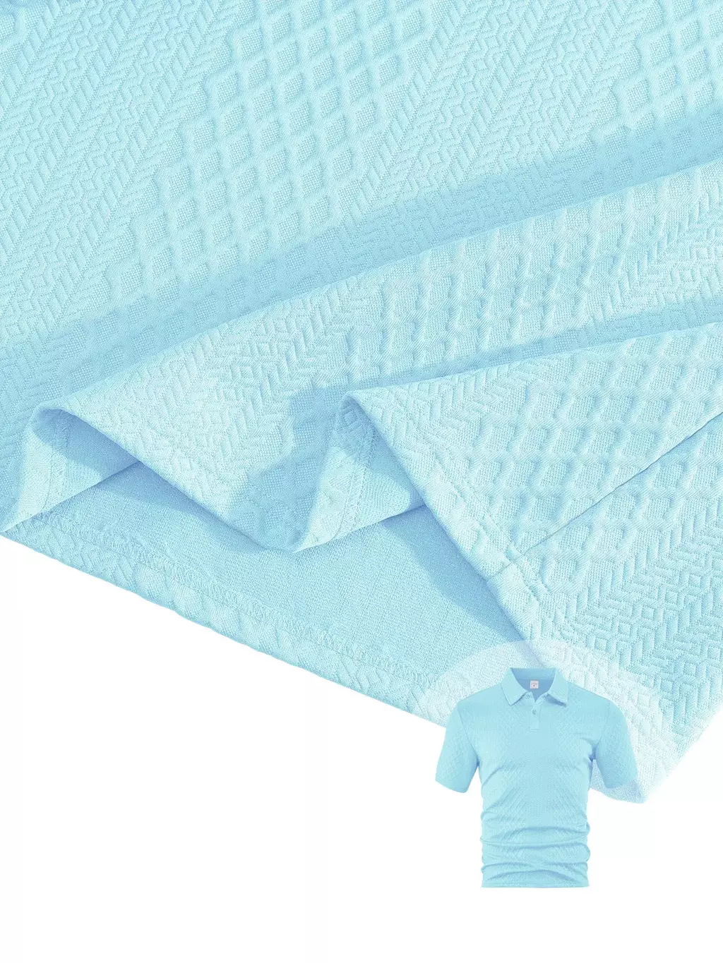 O design de lapela e as mangas curtas da camisa pólo proporcionam um visual elegante, mas descontraído, adequado para diversas ocasiões.