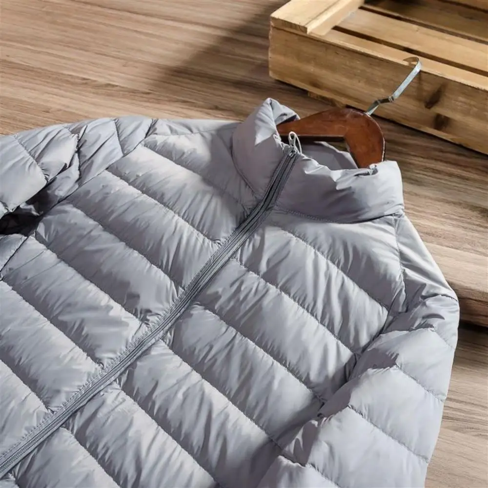 O zíper diagonal facilita a abertura e fechamento do casaco, proporcionando uma experiência de uso conveniente e prática.