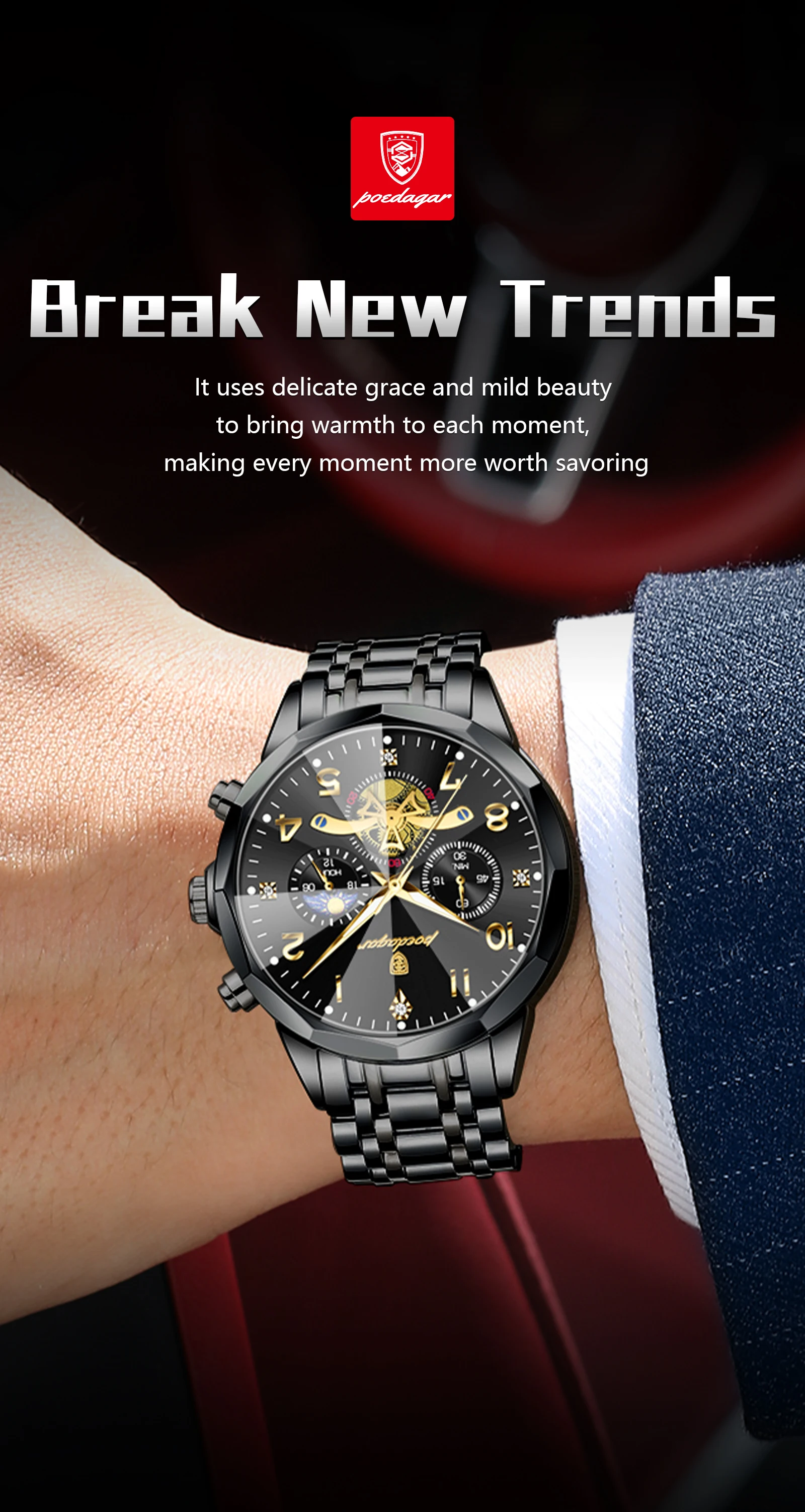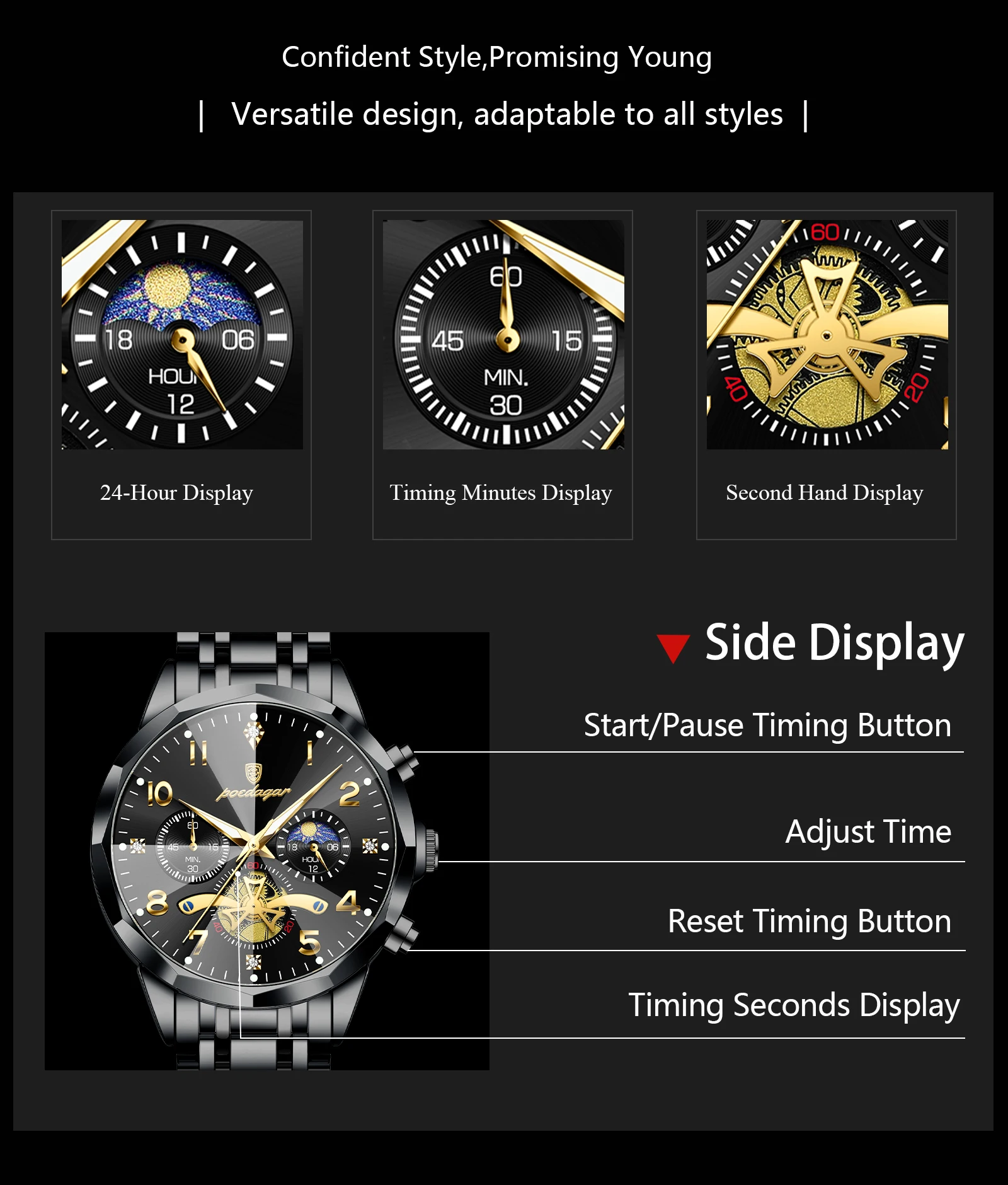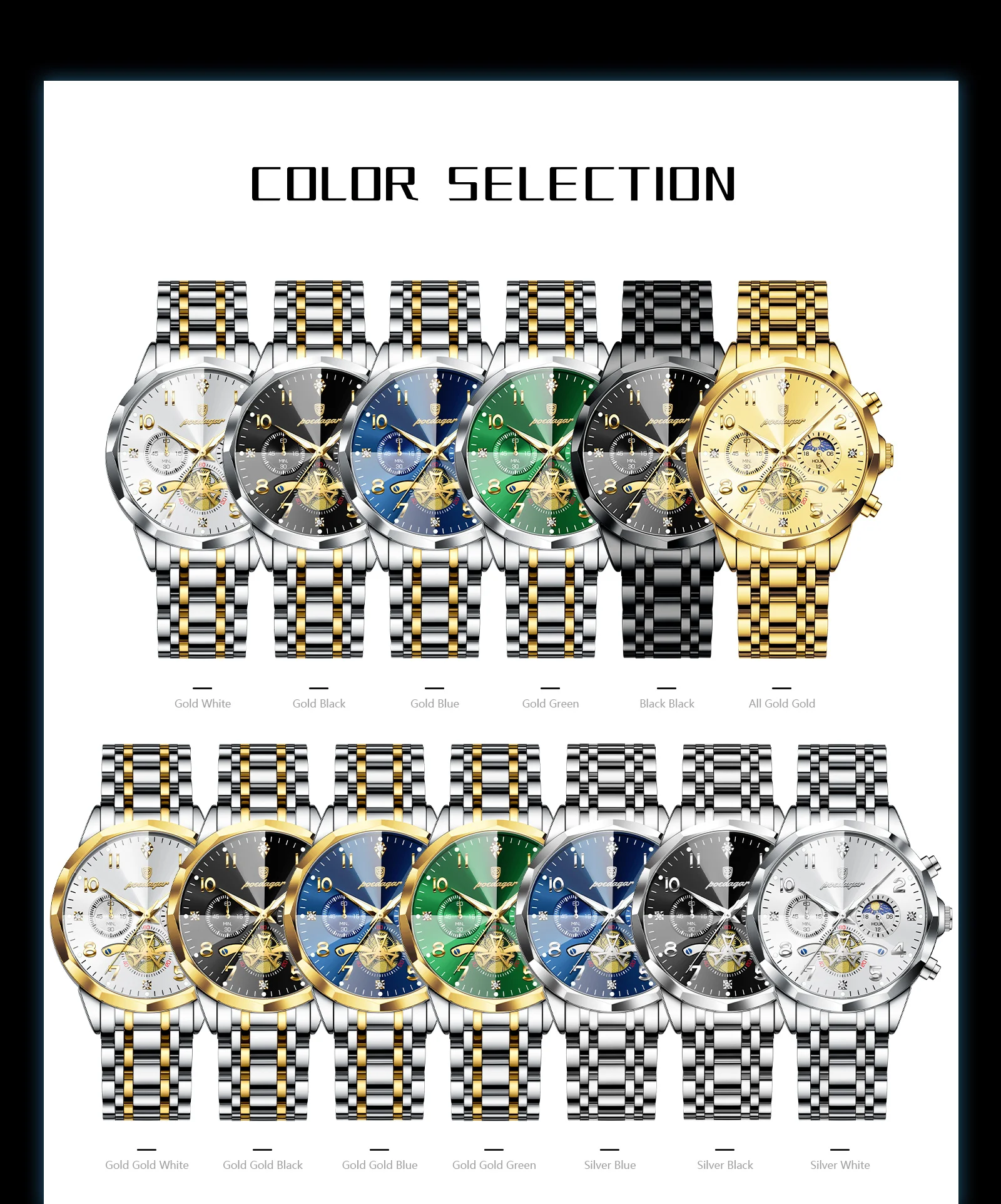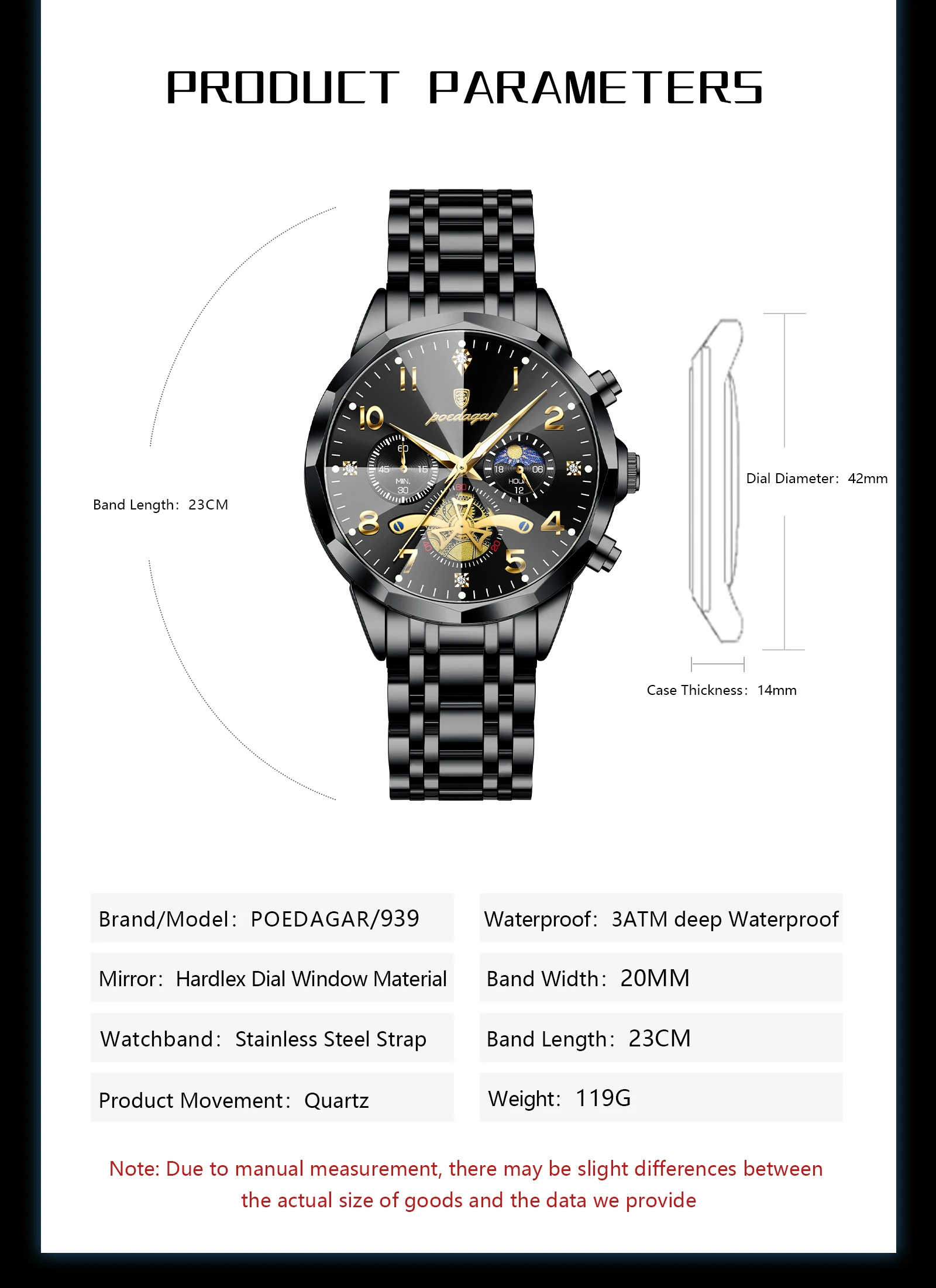 Tipo de matéria da pulseira: Aço inoxidável